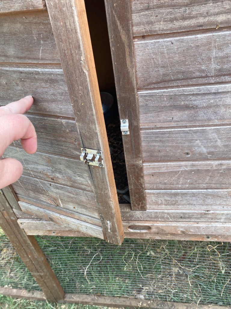 Ok, so mainly it was fixing the doors so that they stay closed. I still need to work on the door to the coop, and put on more hardware cloth to patch a hole, but for now it is good enough.