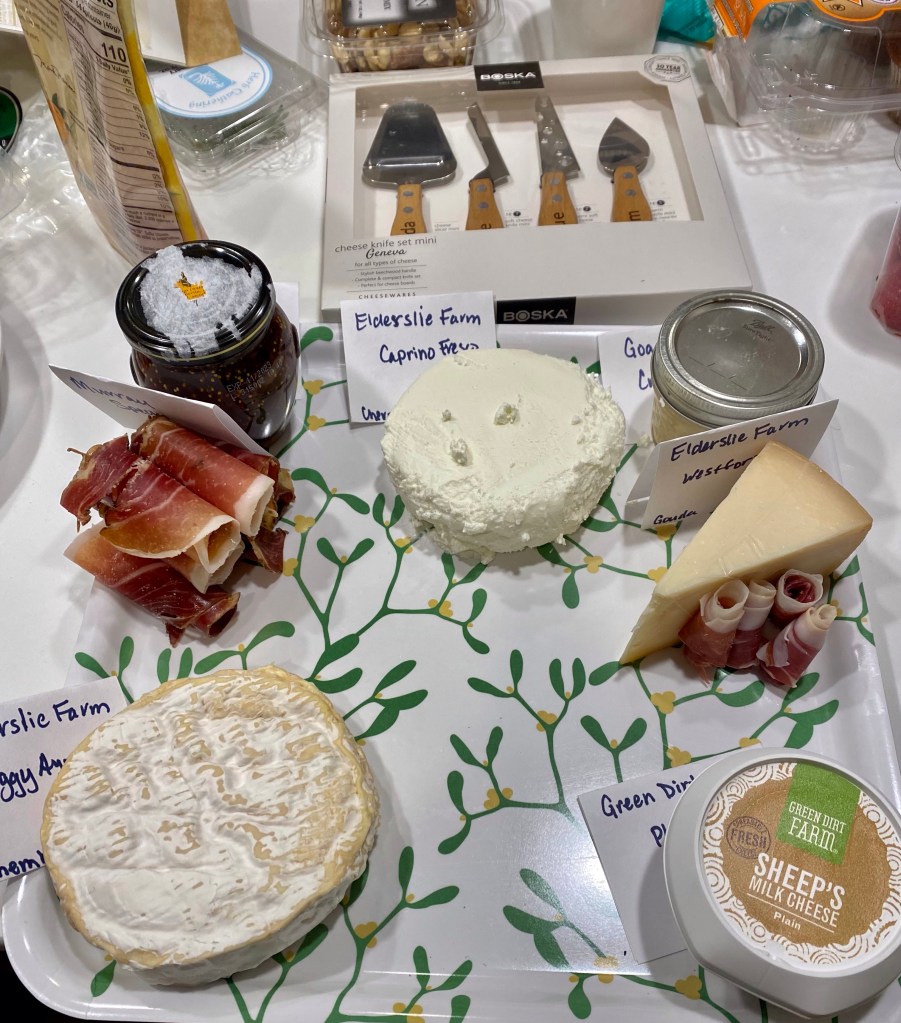 First you’ve got to get the main components, meat and cheese. We have an amazing creamery pretty close to us, Elderslie Farm. I picked up a goat Gouda, a Camembert type, and my favorite, a simple chèvre. I also picked up some fresh sheep’s milk cheese from Green Dirt Farm.