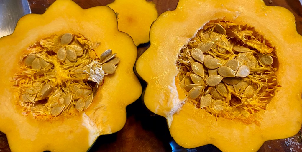 I had this beautiful acorn squash in my refrigerator, begging to be roasted.