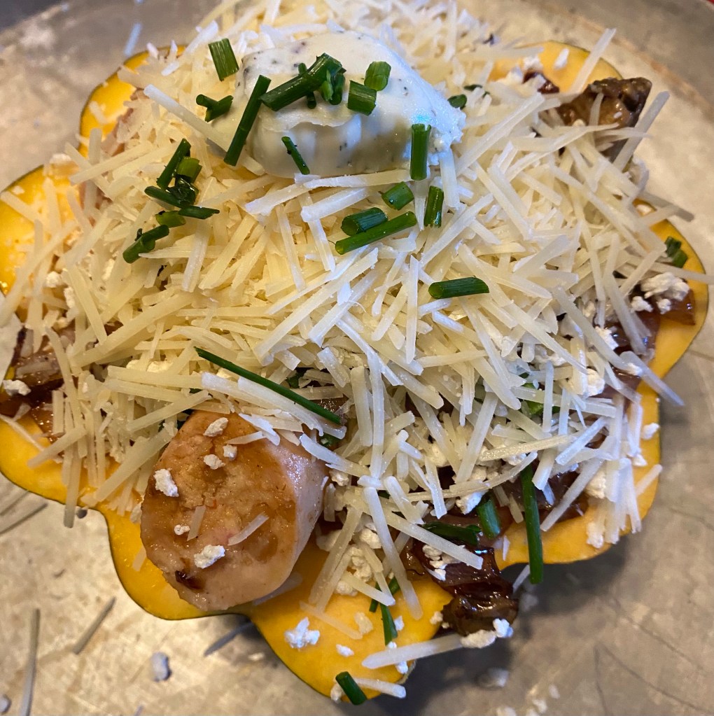 Chicken Sausage and Mushroom Stuffed Acorn Squash