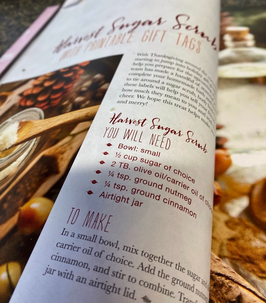 So I was looking through a Willow and Sage magazine, and came across this recipe for a sugar scrub.