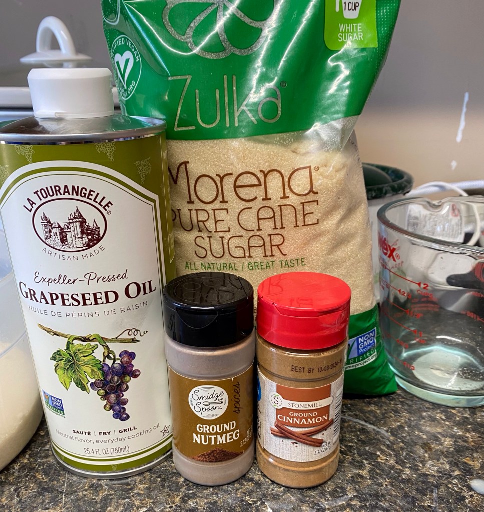 I used pure cane sugar for the larger crystals. Grapeseed oil that I used for the lip balm. And super cheap nutmeg and cinnamon.