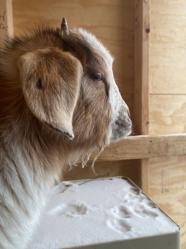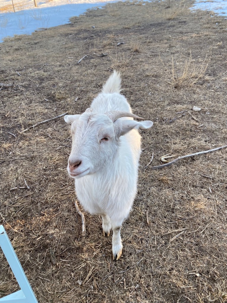 Finally, we have our newest and youngest goat, Ivy. Ivy loves every single thing on earth. Especially her humans. She would like to be a lap goat.