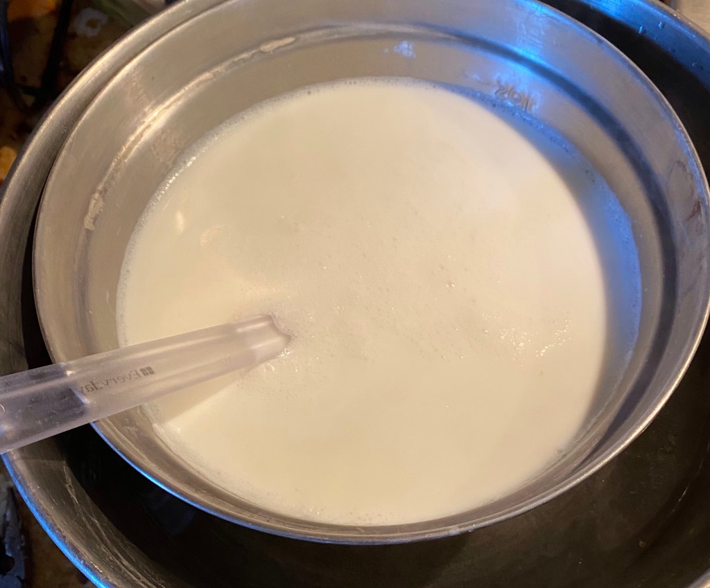 Since I had goat milk, I figured I’d try goat yogurt. I searched around for a good sous vide recipe. I am weird about leaving it out in a cooler overnight. But a sous vide where I can micromanage the temp, I’m good!