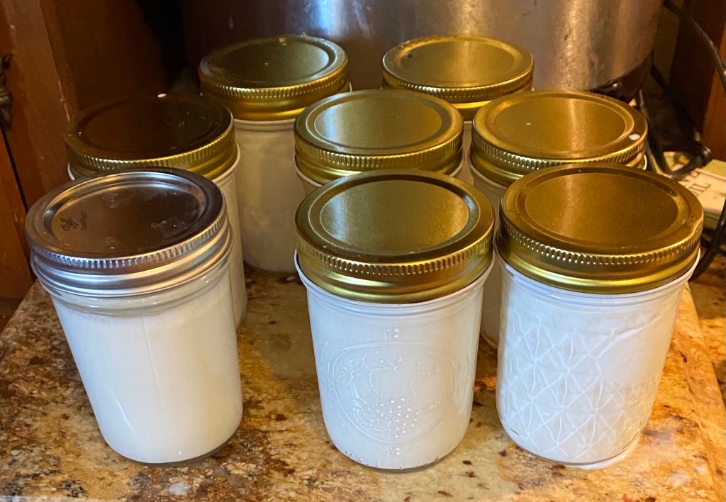 I ended up with 8 half-pint jars of yogurt.
