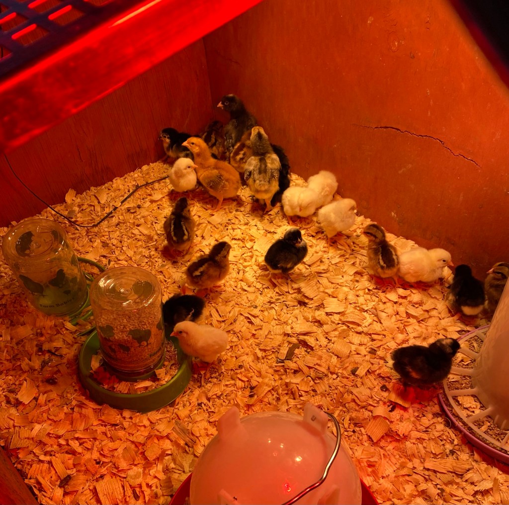 So we got our new peeps this week. Of course on the busiest possible day. Our Honda is in desperate need of a brake job, and the parts aren’t in yet, so we’re down to one fully operational car. We both have 8:30s in town, so we are crunched for time. So of course the post office calls to say the chicks are in.