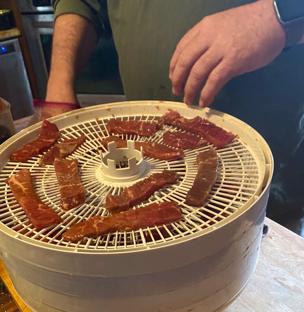 In the morning, he put the strips into the dehydrator on full blast.