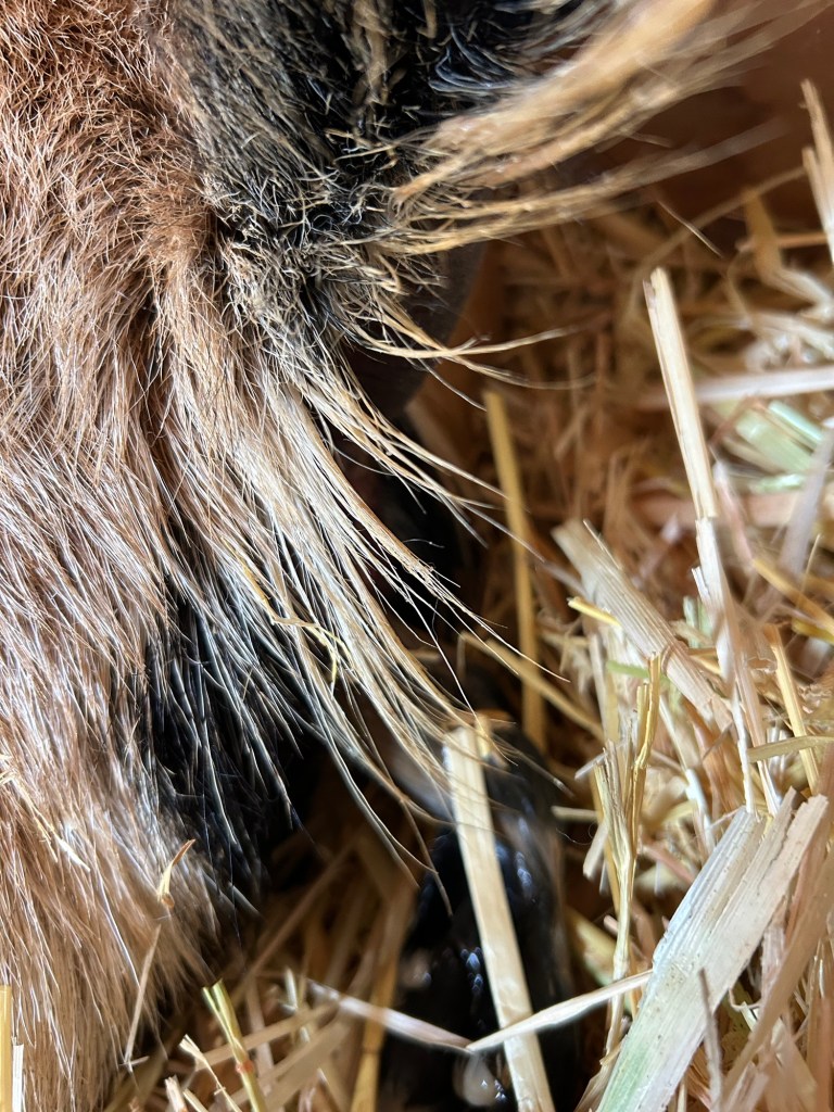 The thousand-yard stare of a goat in labor. CW: A couple of pics of the birth. Nothing gory, or of the goat after delivery. Also discussion of stillbirth. If this isn’t for you, don’t read more. Just know that Violet is fine, she was checked out by the vet and all is well.