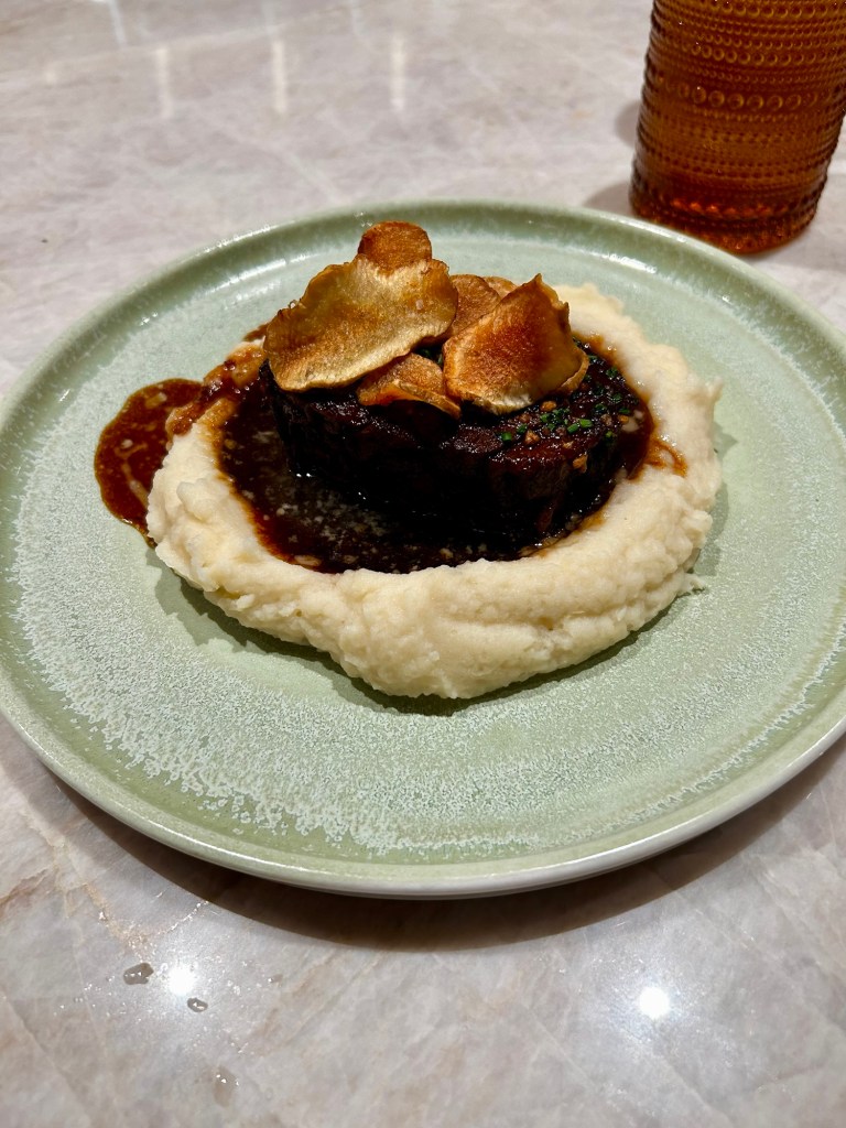Braised short rib with celeriac and potato purée.