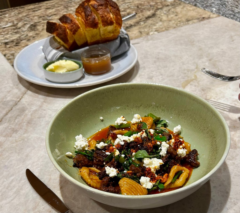 The husband got the lamb orecchiette, his second round on that one, at least. So one time, we were there and he got the lamb, but since it had pasta in it, I couldn’t try it (damn you celiac). The chef overheard me say to the Husband that I wished I could try the lamb, it looked amazing. About five minutes later, here comes the chef with a plate with a small portion of lamb on it so I could taste. It’s that kind of place. ❤️